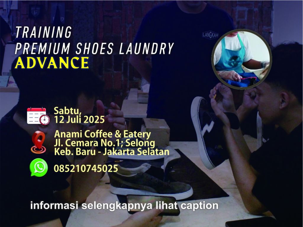 MATERI Pengenalan material sepatu, Pengenalan alat-alat serta cairan apa saja yang digunakan; Deep Clean (include whitening), Repaint, Unyellowing, Polish & Wax, Water Repellent, tanya jawab seputar laundry sepatu. DENGAN PRAKTEK. Alat kami sediakan (pinjamkan).
